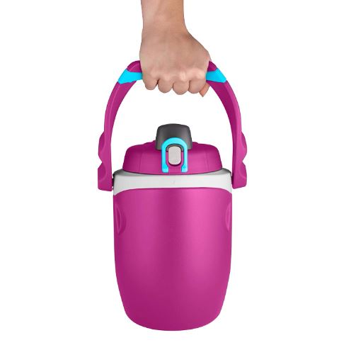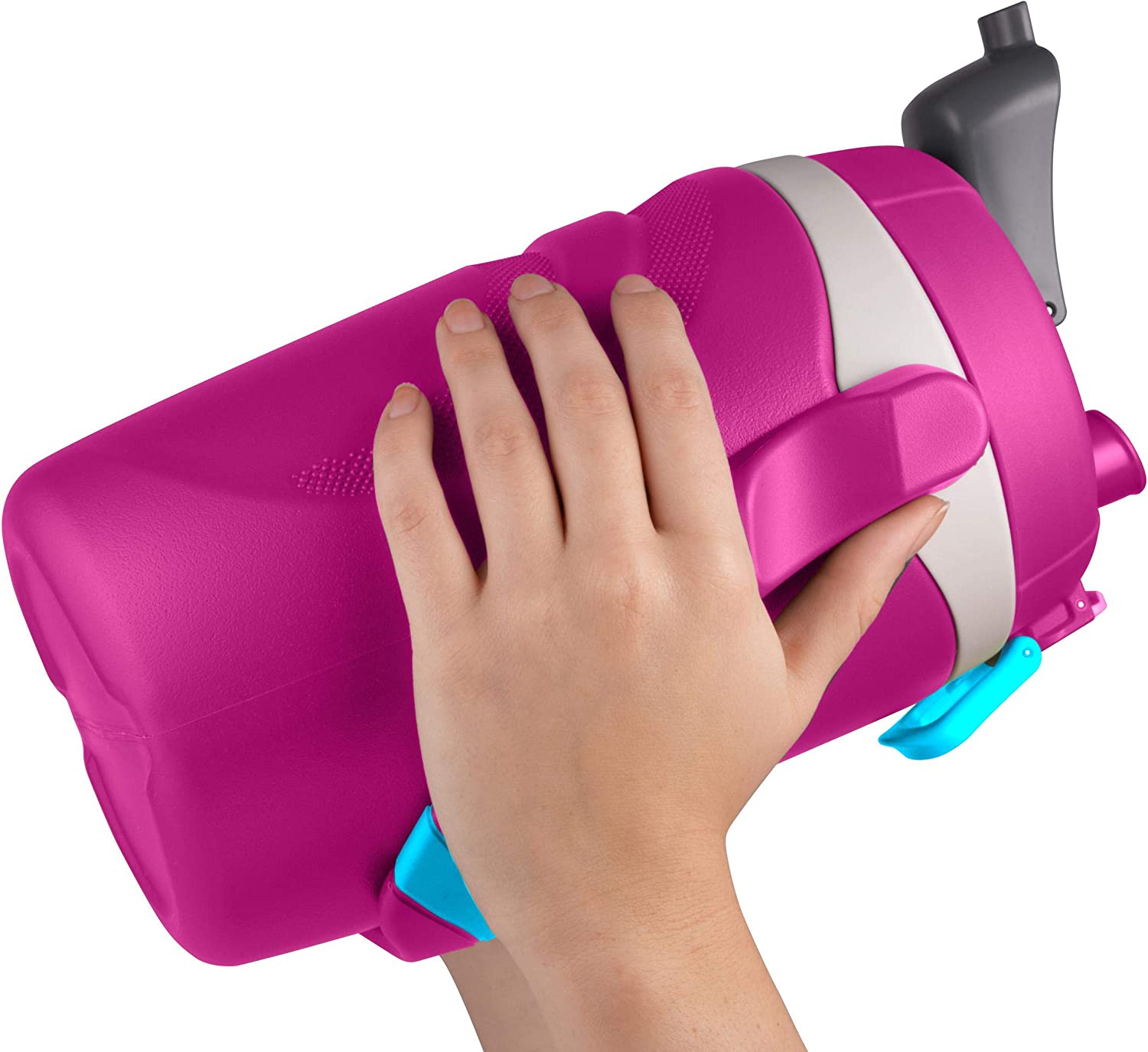 无论你是在做你最喜欢的运动,周末露营,在户外工作,还是在泳池边,这款64盎司保温补水瓶都可以帮你补充一整天所需的水分。这款双壁保温瓶最大限度地保持低温:它可以让你的冷冻饮料或水保持12小时的低温。瓶子有一个带锁闩的按钮盖,便于安全运输。按下按钮,盖子就会弹出,露出一个卫生硬嘴。瓶体采用符合人体工程学的设计,带携带手柄,最大限度地提高了便携性。注意:不适用于高温液体。