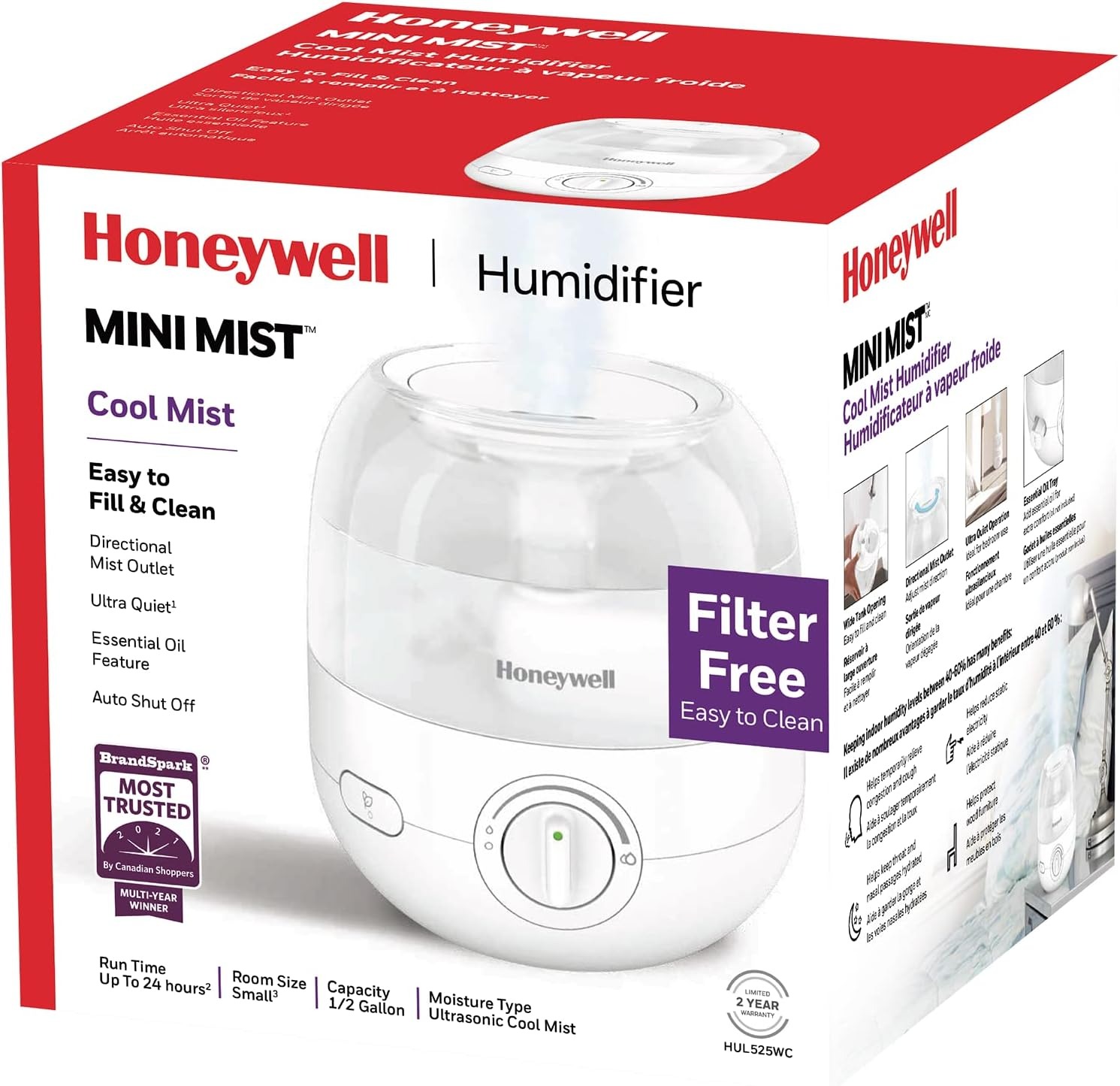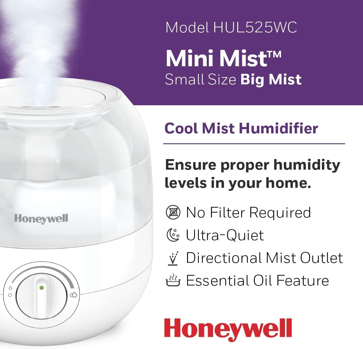 历史最低价!Honeywell 霍尼韦尔 HUL525WC 1.89升超声波冷雾加湿器特卖! 自动关闭,超静音运行