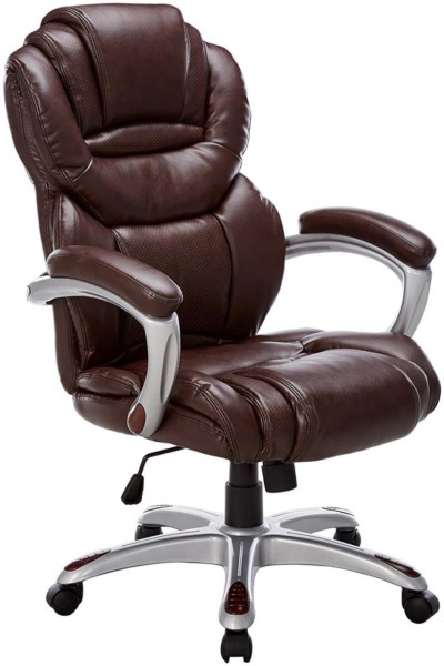 这款豪华办公椅采用棕色真皮面料,符合人体工程学的座椅标准,舒适柔软,高靠背设计,加厚背部和座垫为脖子和头部提供了足够的支撑。
