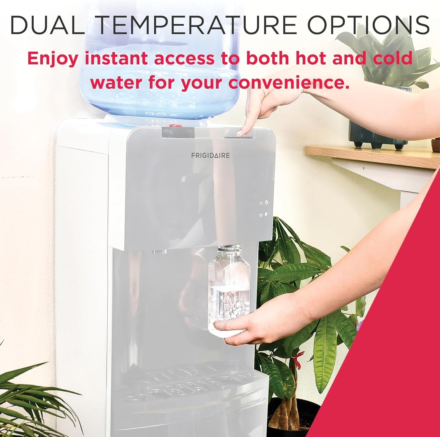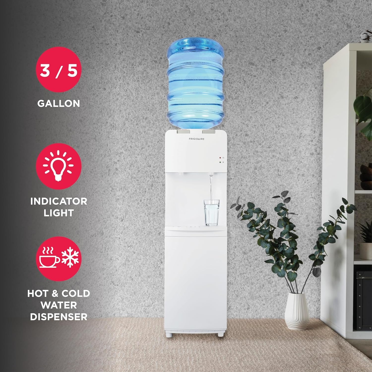 顶部装载供水桶,可轻松观察水位。兼容3加仑和5加仑的桶装纯净水(不含水桶)