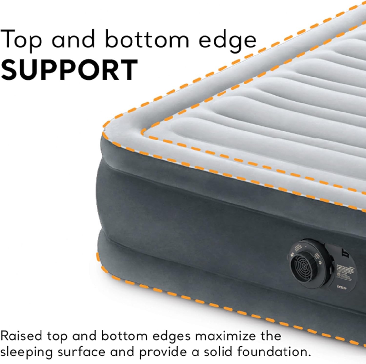 采用独特的边缘结构设计,可承受睡眠者的重量而不会下垂,并且比传统气垫床耐用 100%,支撑性提高 35%,重量减轻 15%