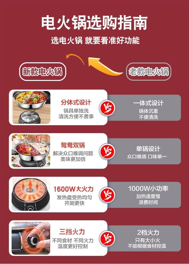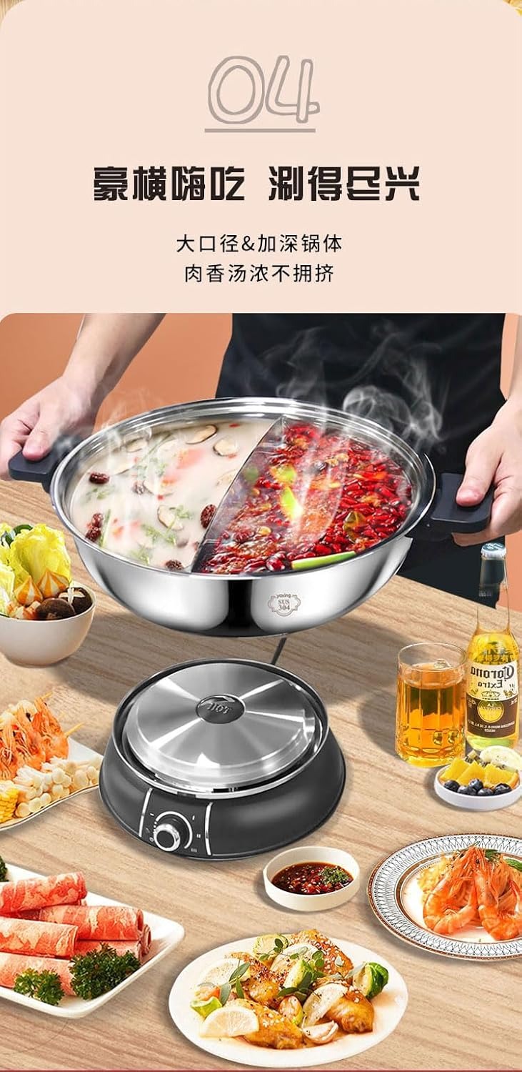 5升容量,双隔设计,可同时烹制辣味和清淡口味的汤底