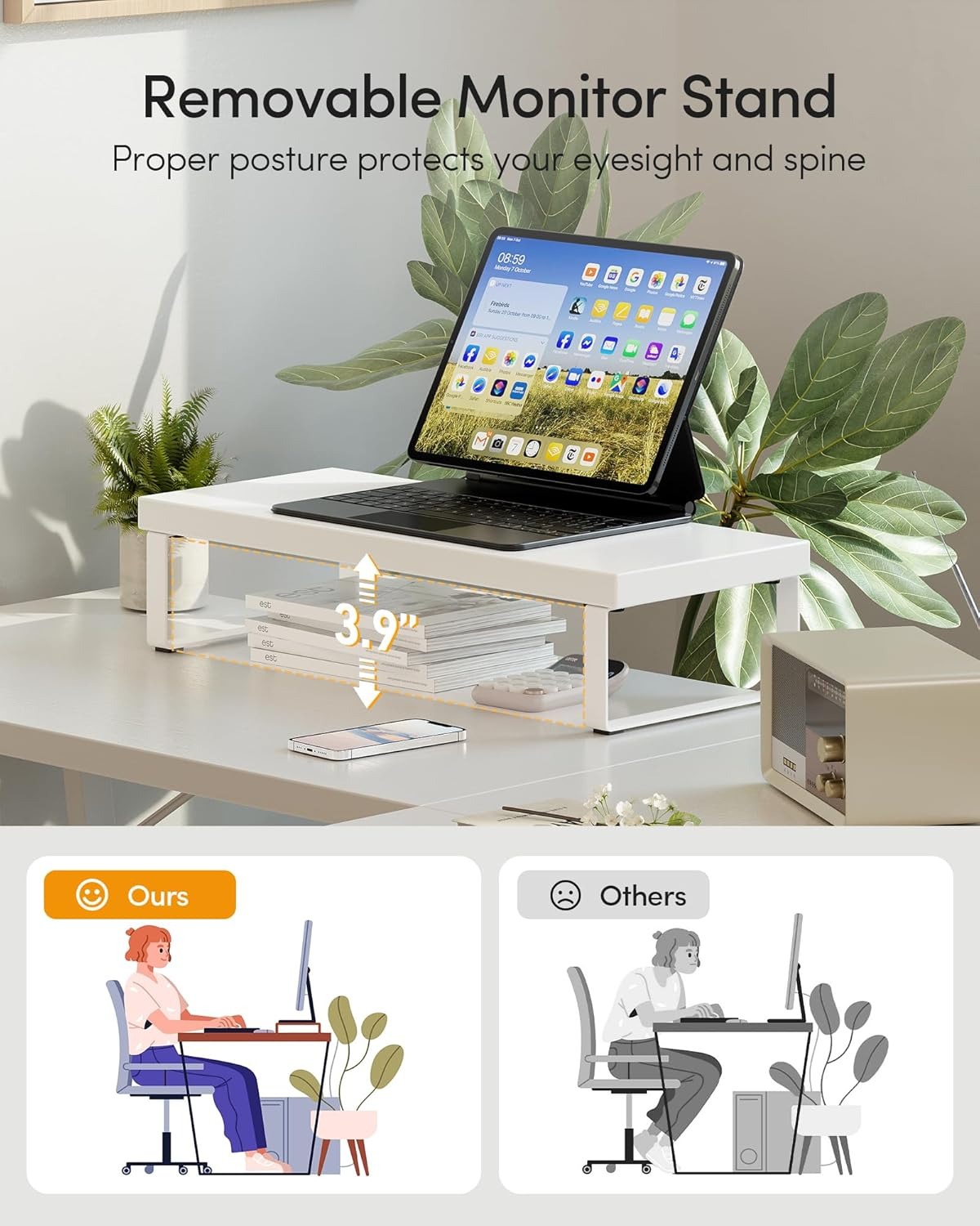 灵活设计和多功能性,配有可移动的显示器支架,可以根据自己的具体需求进行调整。