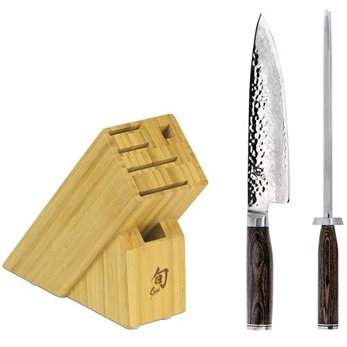 旬 Shun Premier 刀具3件套包括竹刀座,Premier 8英寸厨师刀和磨刀棒
