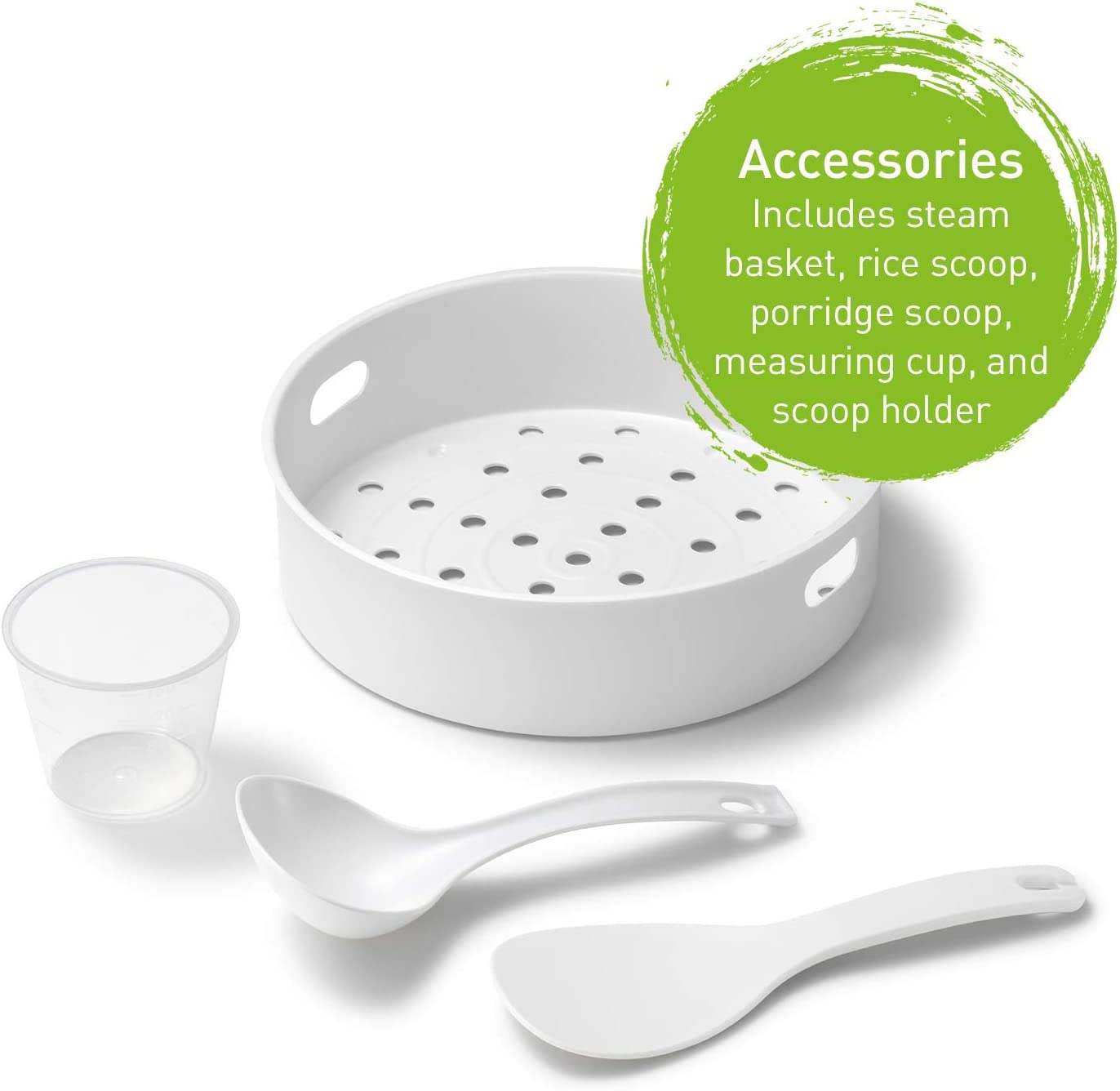 送蒸篮,米铲,量杯,可以蒸各种蔬菜、鱼、肉和其他食物,与此同时蒸米饭,简单搞定饭和菜。