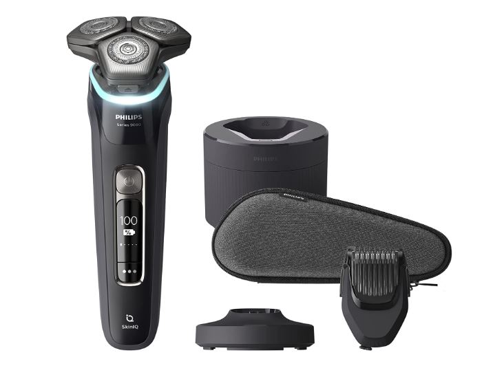 飞利浦9000 系列 干湿两用电动剃须刀搭载全新智能科技,采用双钢精密刀片。