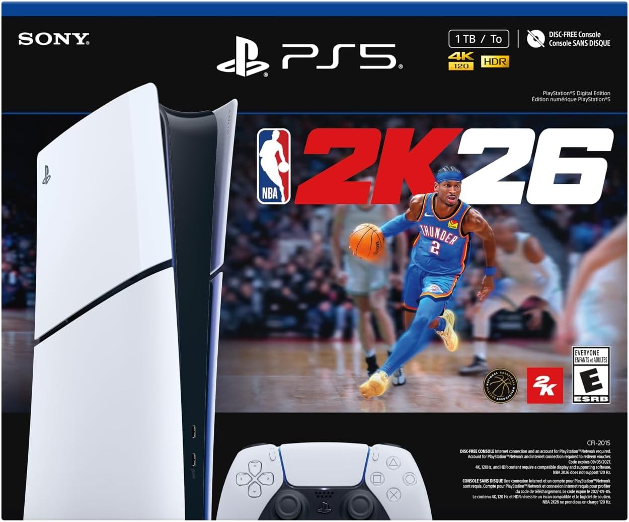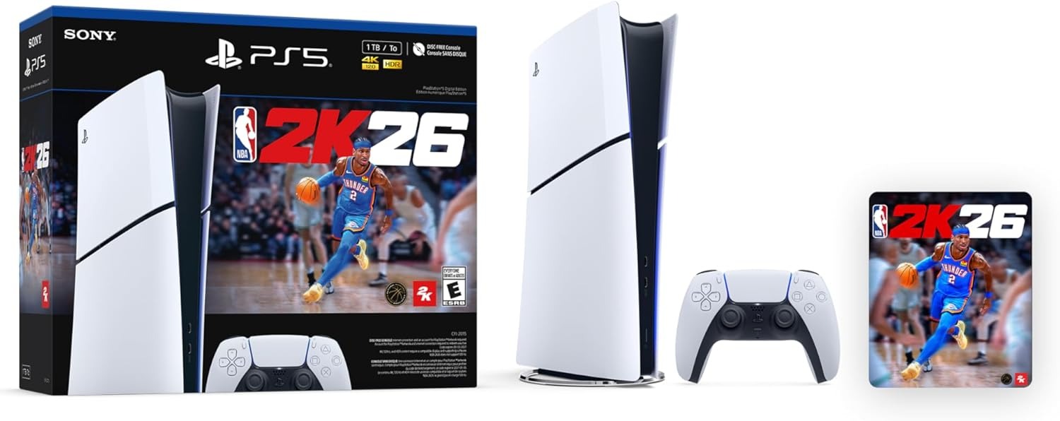 亚马逊现有 PlayStation 5 数字版 游戏机 +《NBA 2K26 》捆绑包特卖+包邮!