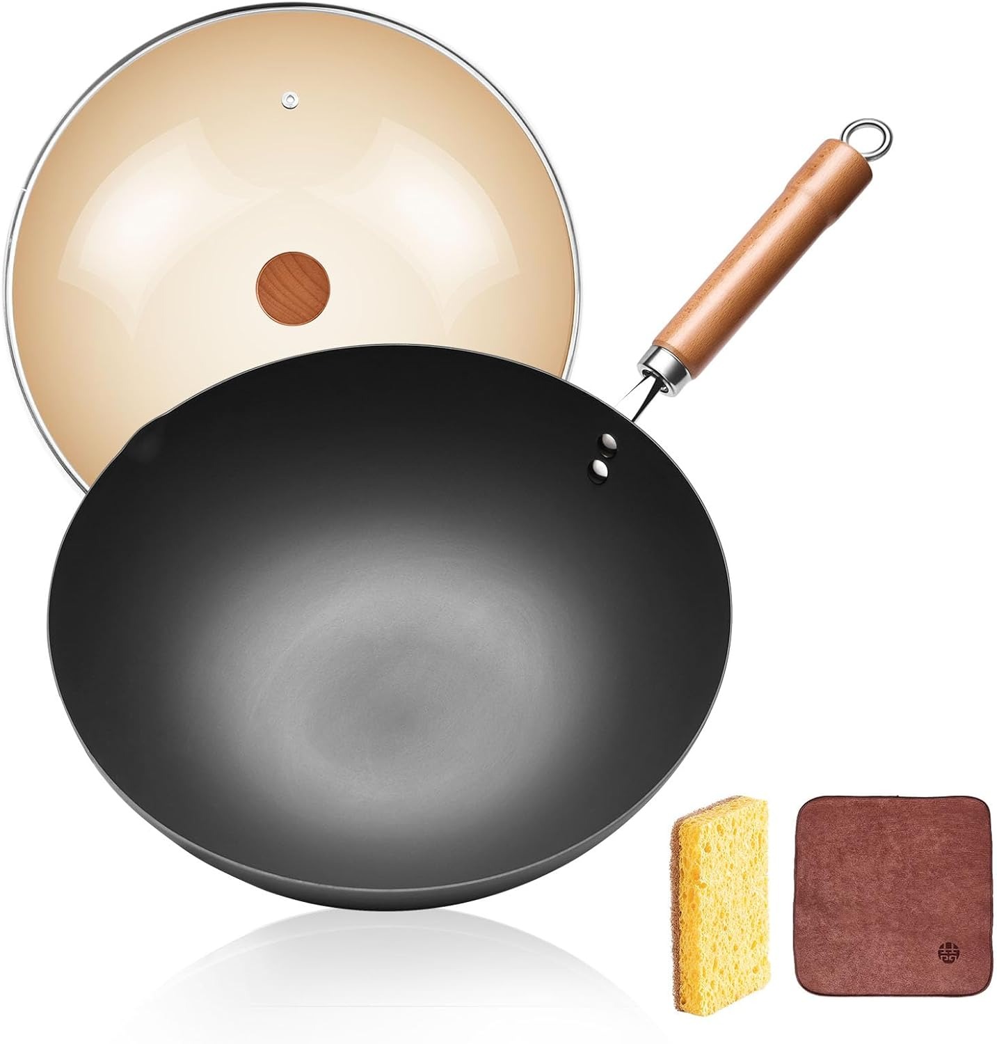 采用坚固的碳钢制成,提供快速均匀的导热,使翻炒更快,可用铁铲翻炒!