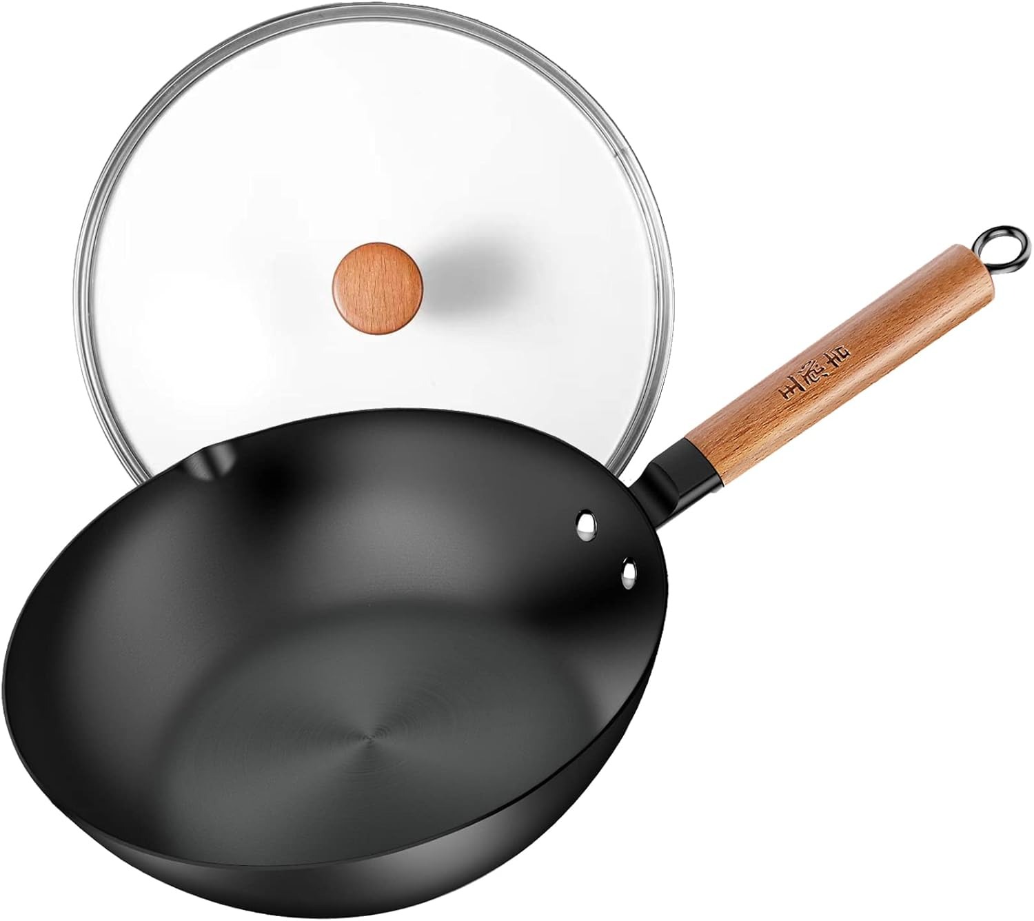亚马逊现有 WANGYUANJI 王源吉 带木柄+玻璃盖 中式碳钢深炒锅特卖+包邮!