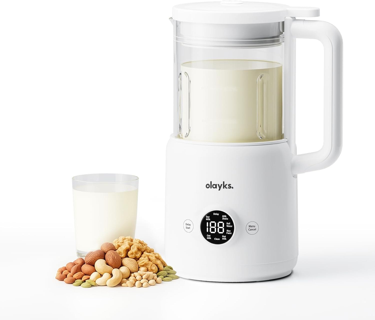 Olayks 600毫升 20盎司 多功能自动坚果奶机!适用于自制杏仁/燕麦/大豆、植物奶和乳制品饮料,带延迟启动/煮沸/自清洁功能