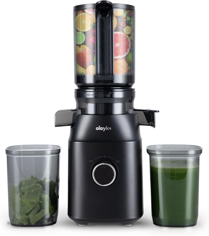 Olayks 冷压榨汁机特卖!配备4.3英寸大进料槽,可容纳整个水果和蔬菜,带有果汁配方,可轻松自动进料,批量榨汁,易于清洁