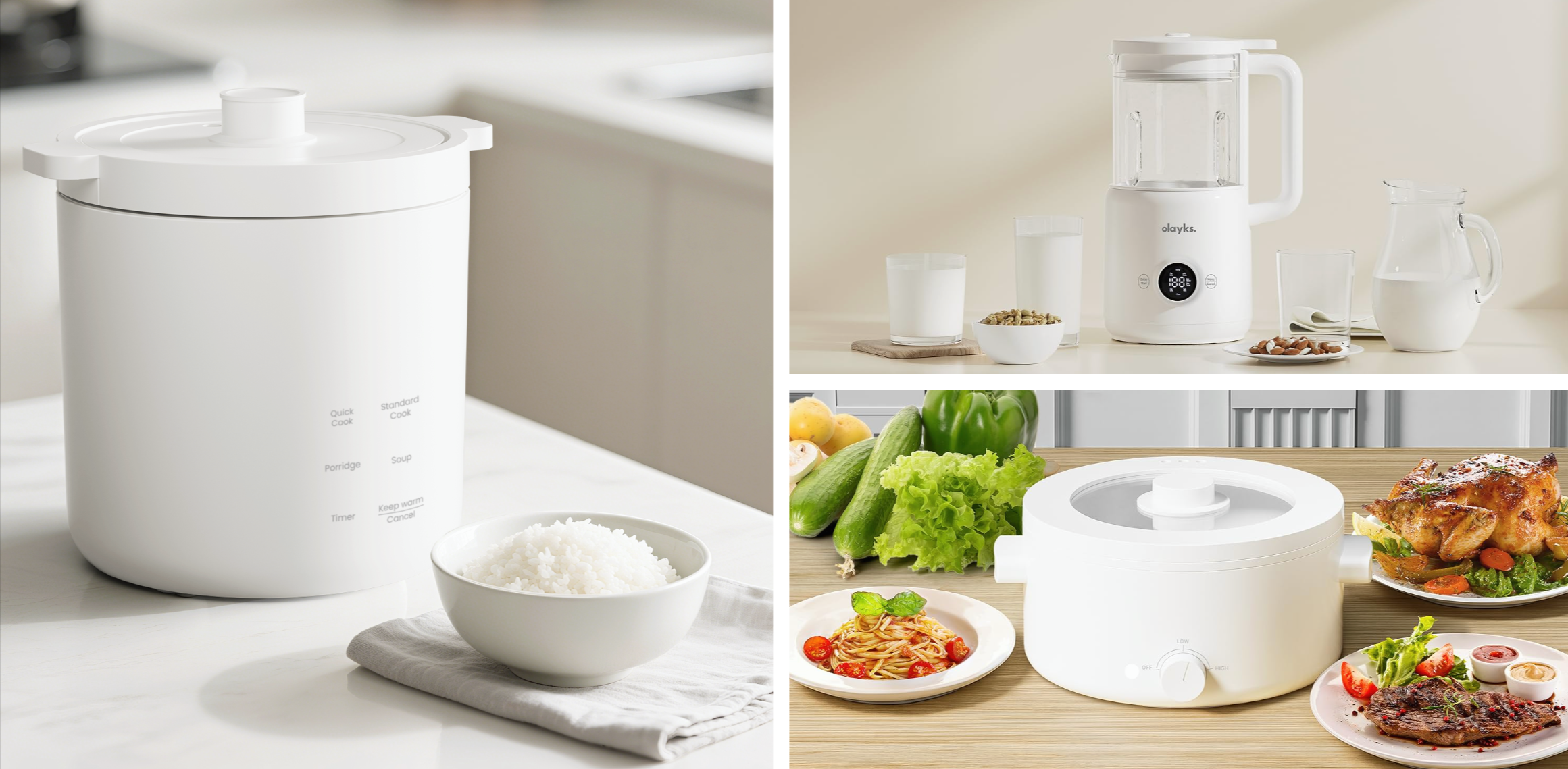 Olayks以“素简美学”和“松弛生活”为设计理念,主要提供实用、具有性价比的小家电