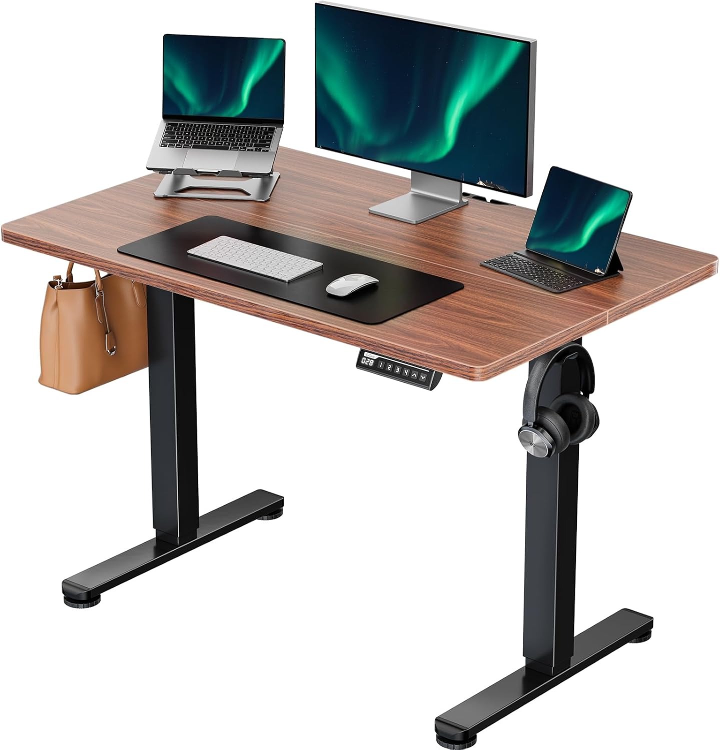 这款电动站立式办公桌配有坚固的实心钢框架,带有航空航天级升降柱连接器(经过100000次测试后仍然稳定安全),即使在全高的情况下也能确保稳定安全。