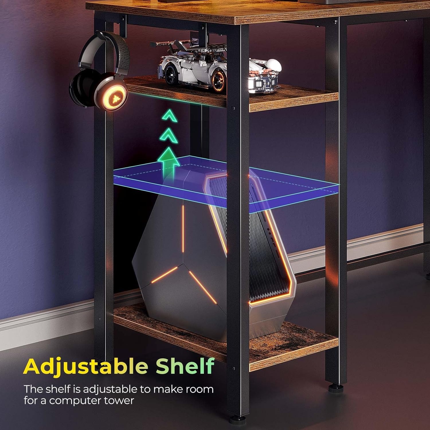 桌面配备炫酷RGB LED灯条,可提供20种颜色和5种动态模式。娱乐时,调暗灯光并选择喜欢的颜色,完全沉浸在游戏世界中。工作时,选择喜欢的颜色,更加专注。它具有记忆功能,开机后LED灯条将保持上次使用的模式。智能LED灯条位于控制器盒内。