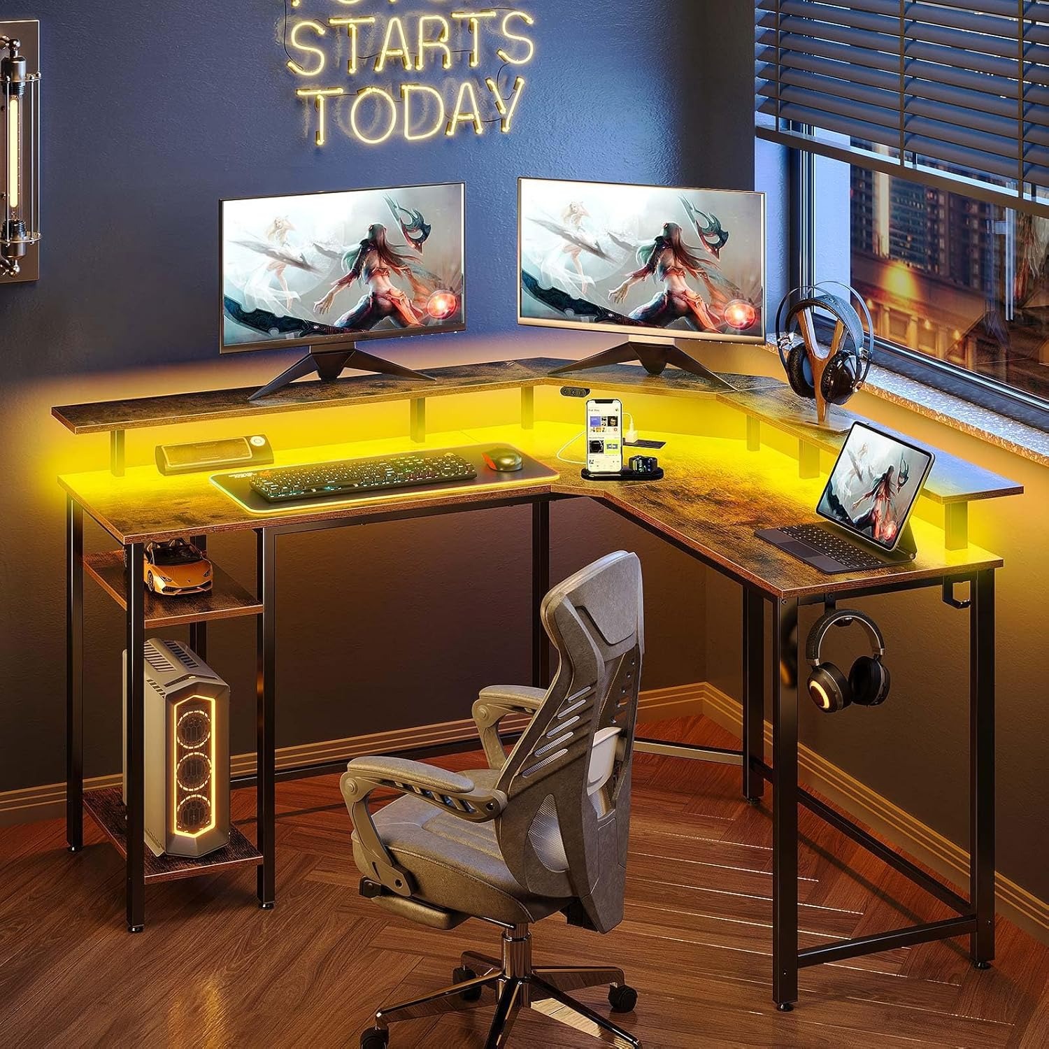 亚马逊现有 Rolanstar 46.2英寸 L型双层电脑桌/办公桌/游戏桌 特卖+包邮!
