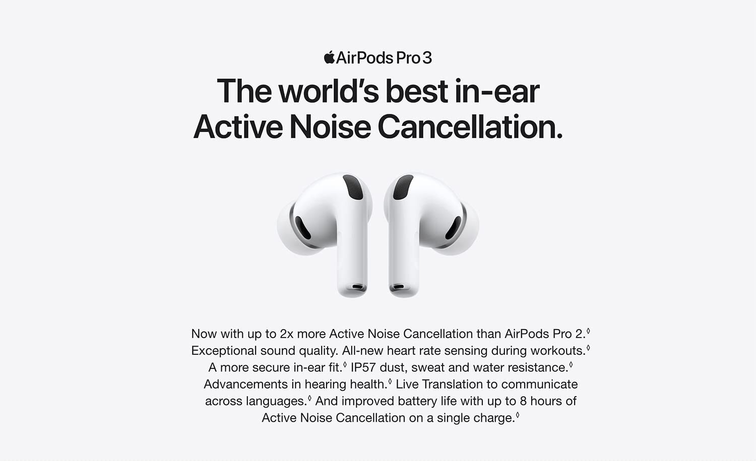 亚马逊现有 Apple 苹果 AirPods Pro 3 主动降噪/实时翻译/心率感应/防汗防水 无线蓝牙耳机特卖+包邮!