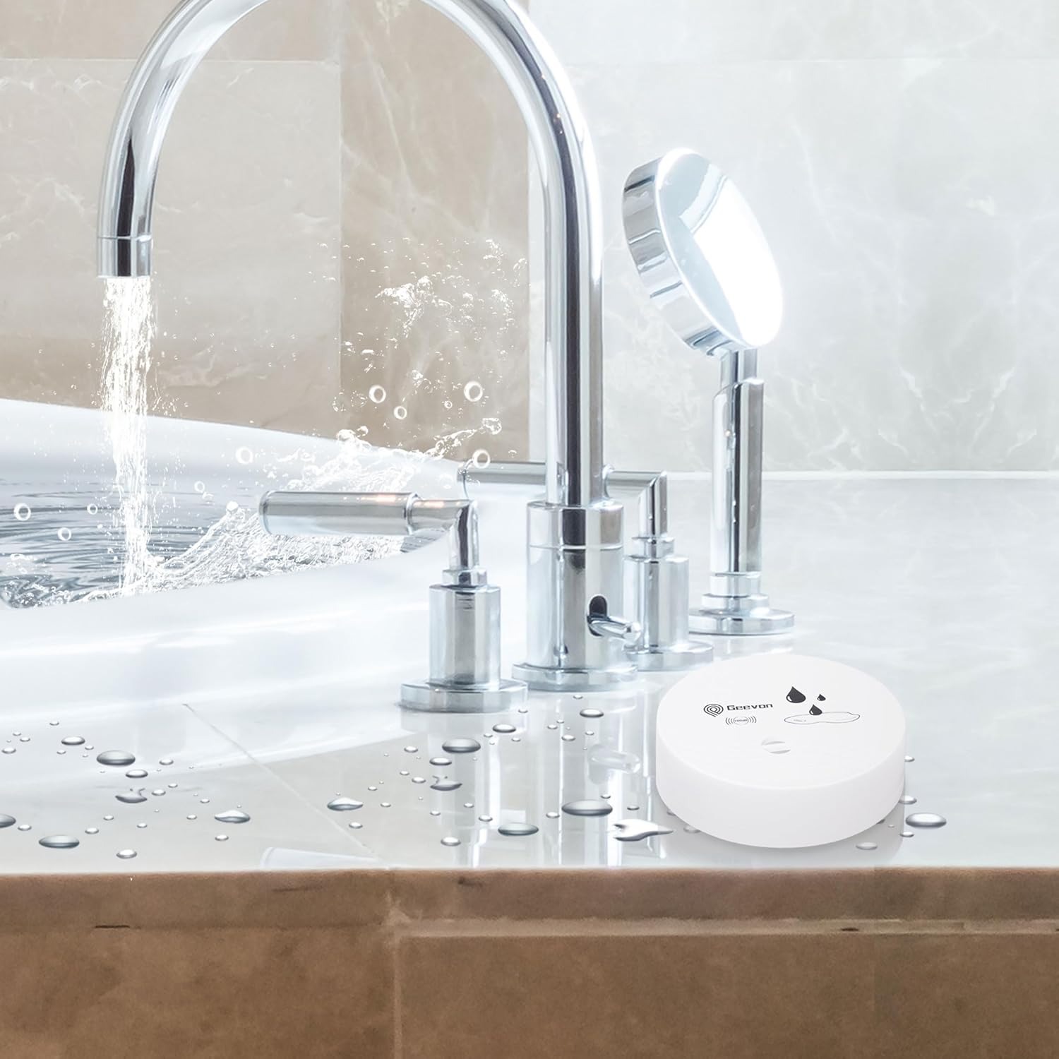 Geevon 漏水报警传感器直径 8 厘米,高 3 厘米,可轻松放置于任何位置,例如地下室、浴室、水槽下方或热水器旁,以便及时检测漏水。不要让漏水损害房屋财产并造成经济损失!