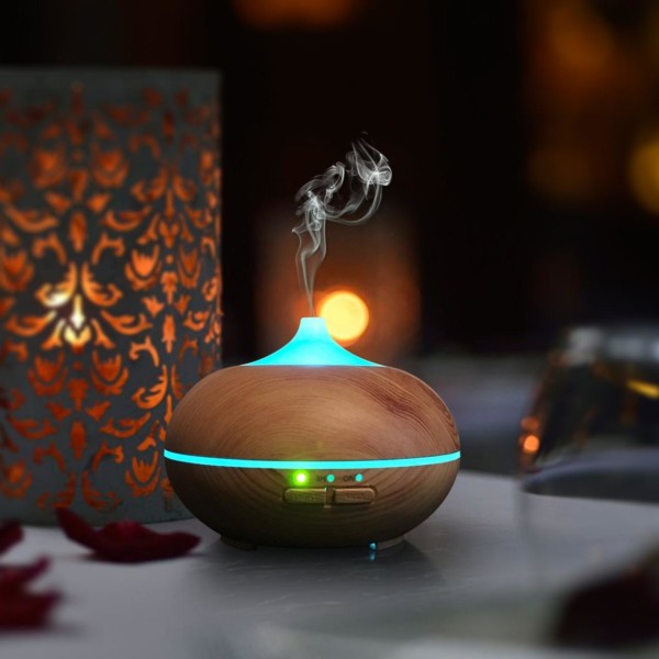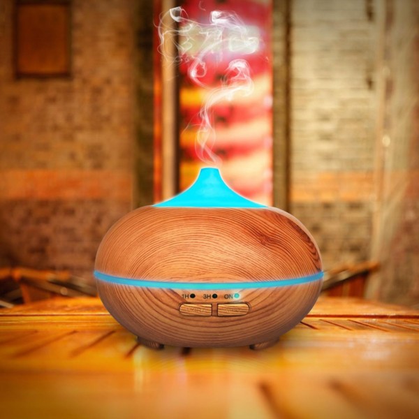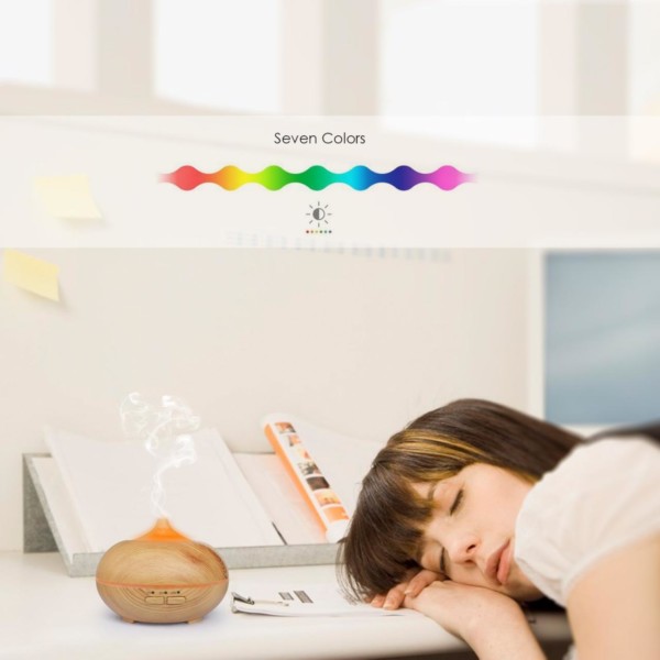 经典的木纹设计,时尚美观大方,可以用来装饰你的房间;木纹香味扩散器散发出的超精细冷雾,为您提供可爱的香味舒缓的环境让你得到放松,同时超声波加湿器蒸发水并发出冷雾,可以提供水分,保护您的皮肤;