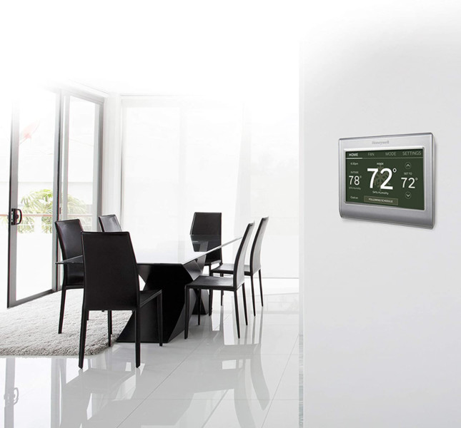 手机、电脑装上Honeywell的相关app,你就能在任何有网络的地方控制你家的空调或暖气系统。
