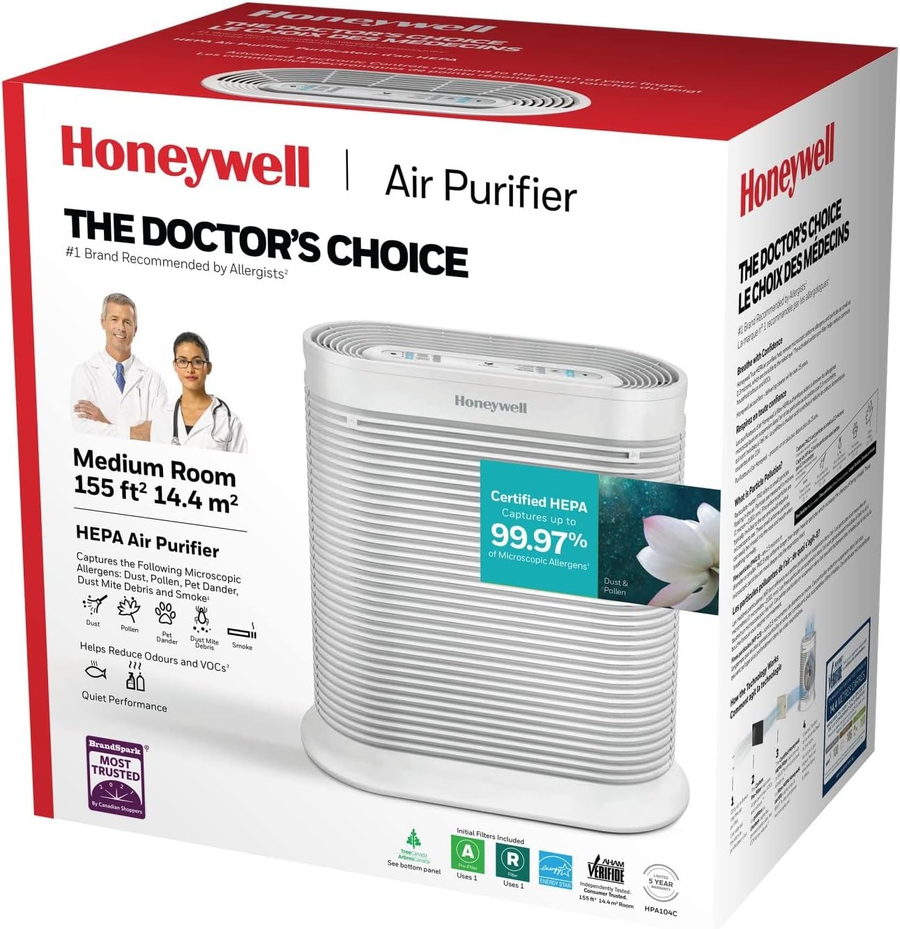 配备True HEPA过滤器:有助于捕捉99.97%的微观过敏原和微粒,例如:灰尘、花粉、烟雾、宠物皮屑、宠物毛发和宠物皮毛。捕获常见的家庭气味、宠物气味和烟雾颗粒,连续多年被加拿大购物者评为最值得信赖的空气净化器品牌