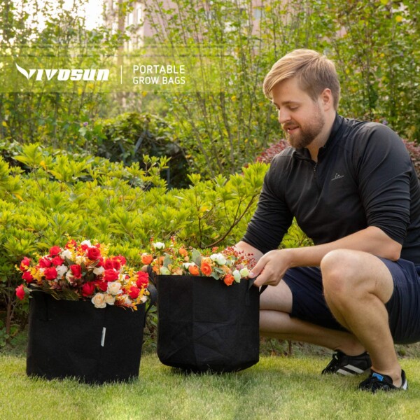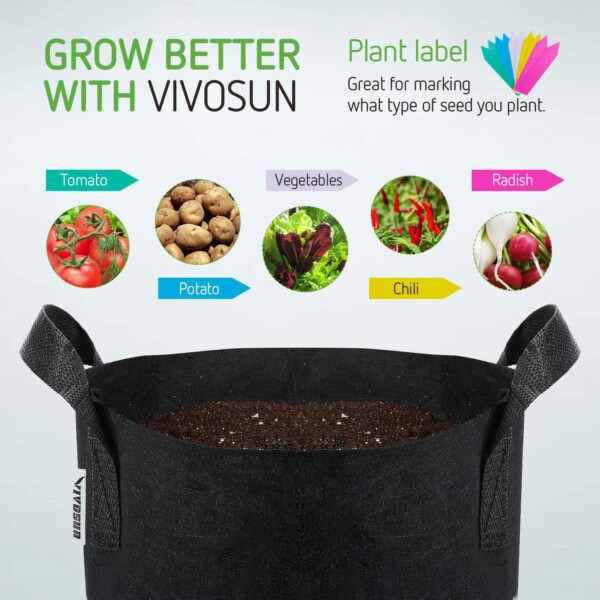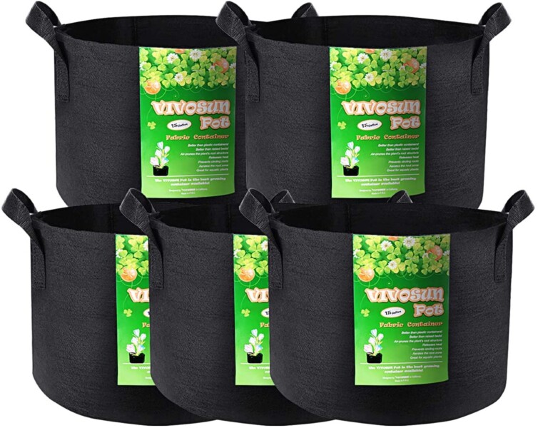 VIVOSUN 1加仑 带把手 重型加厚无纺布种植花盆(5件装)特卖!经久耐用,帮助植物成长!