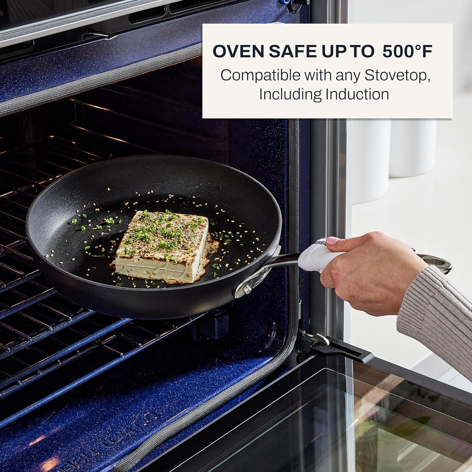 烤箱安全温度高达 500°F(约 260°C),适用于所有炉灶,包括电磁炉。