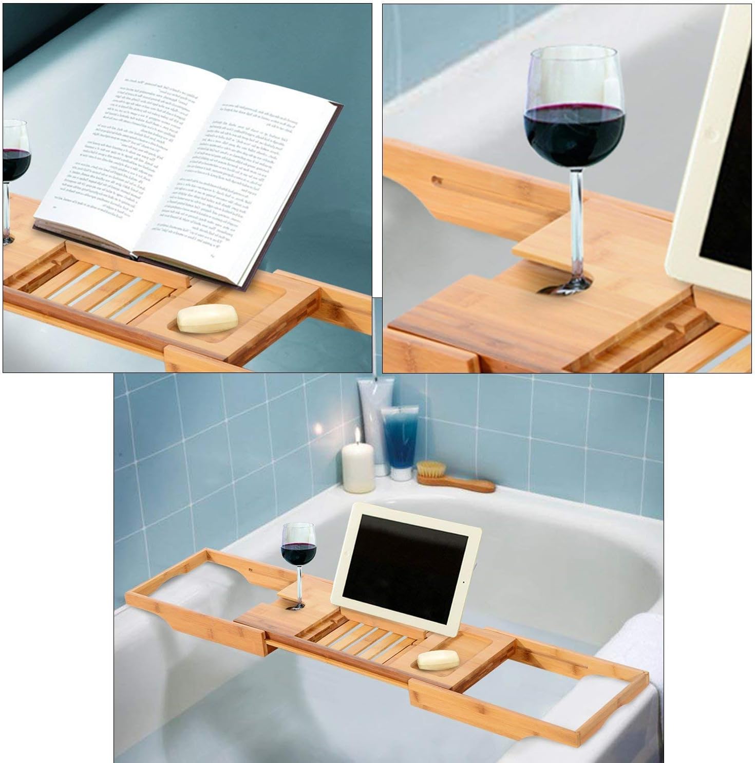 泡澡必备!HomCom 可扩展浴缸架/托盘特卖+包邮!可放书/平板/手机/酒杯/洗浴用品等!勾选 coupon 再减3加元