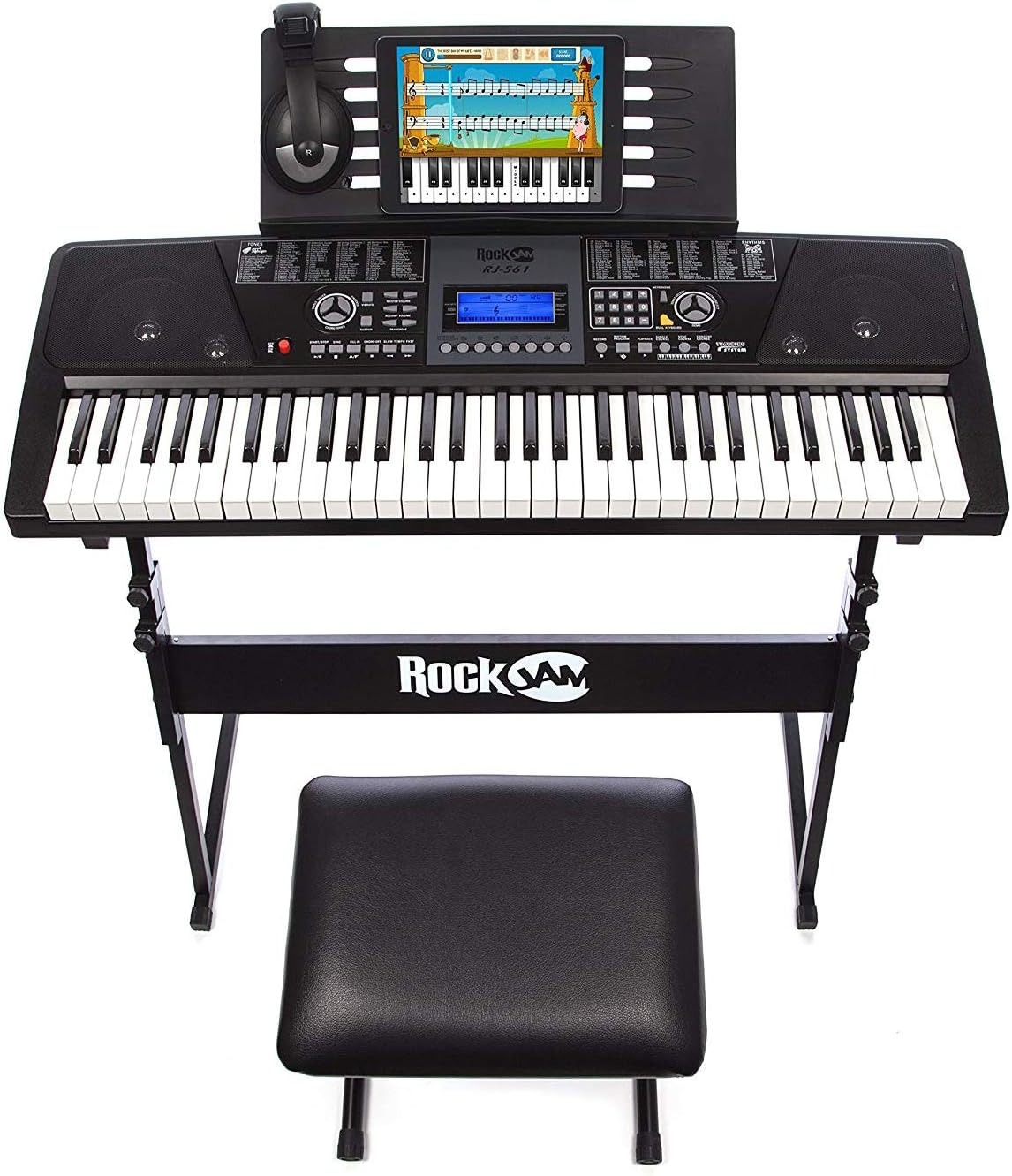 亚马逊现有 RockJam 561 61键电子琴套装 特卖+包邮!附送琴凳、耳机!