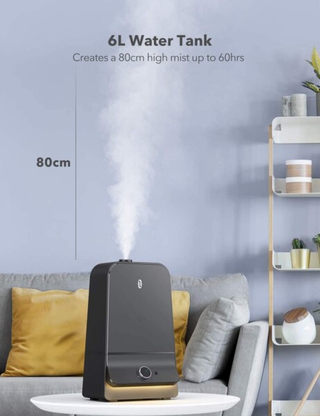 6L大容量:加湿器设有超大水箱提供高达连续1米高的水雾60小时,覆盖房间高达40平方米/430ft²