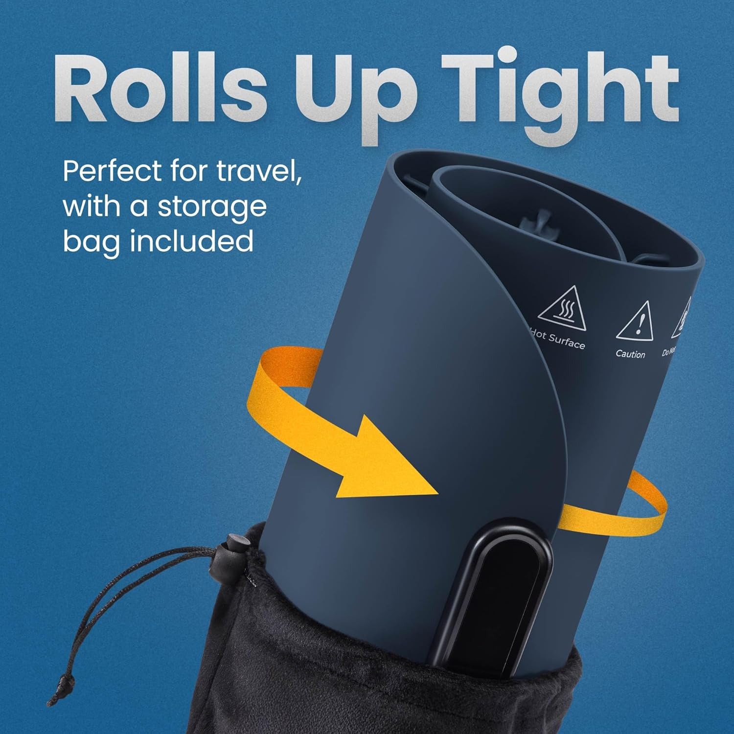设计时尚简约,轻薄可折叠,卷起后仅4 英寸(约 10 厘米)的圆筒状,方便收纳。仅限在耐热台面或表面上使用。
