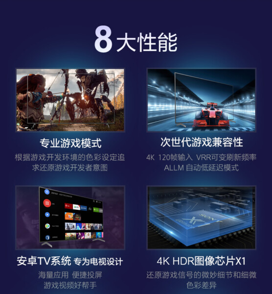 4K超高清面板 4K HDR X1影像处理器,