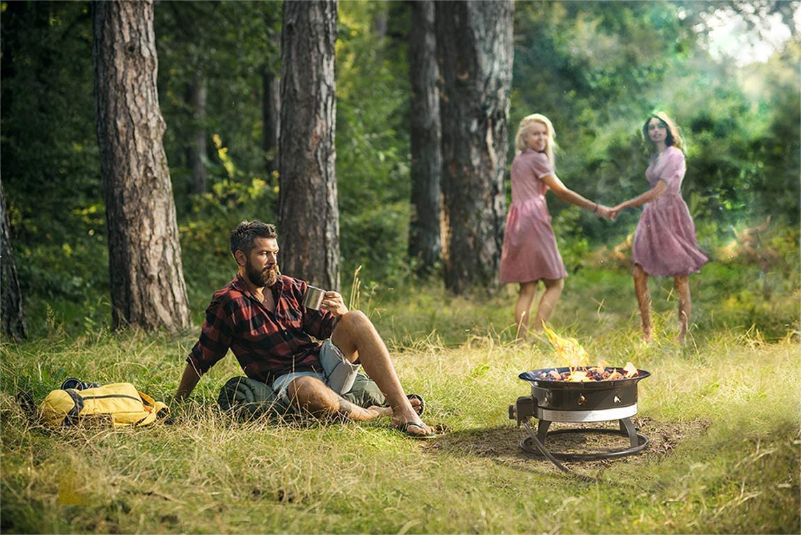 ✓ 紧凑设计,易于携带:火盆重量轻,便于携带;只需几分钟即可轻松打包,无需任何工具。尺寸长19英寸x宽19英寸x高11英寸,输出热量高达58,000 BTU。