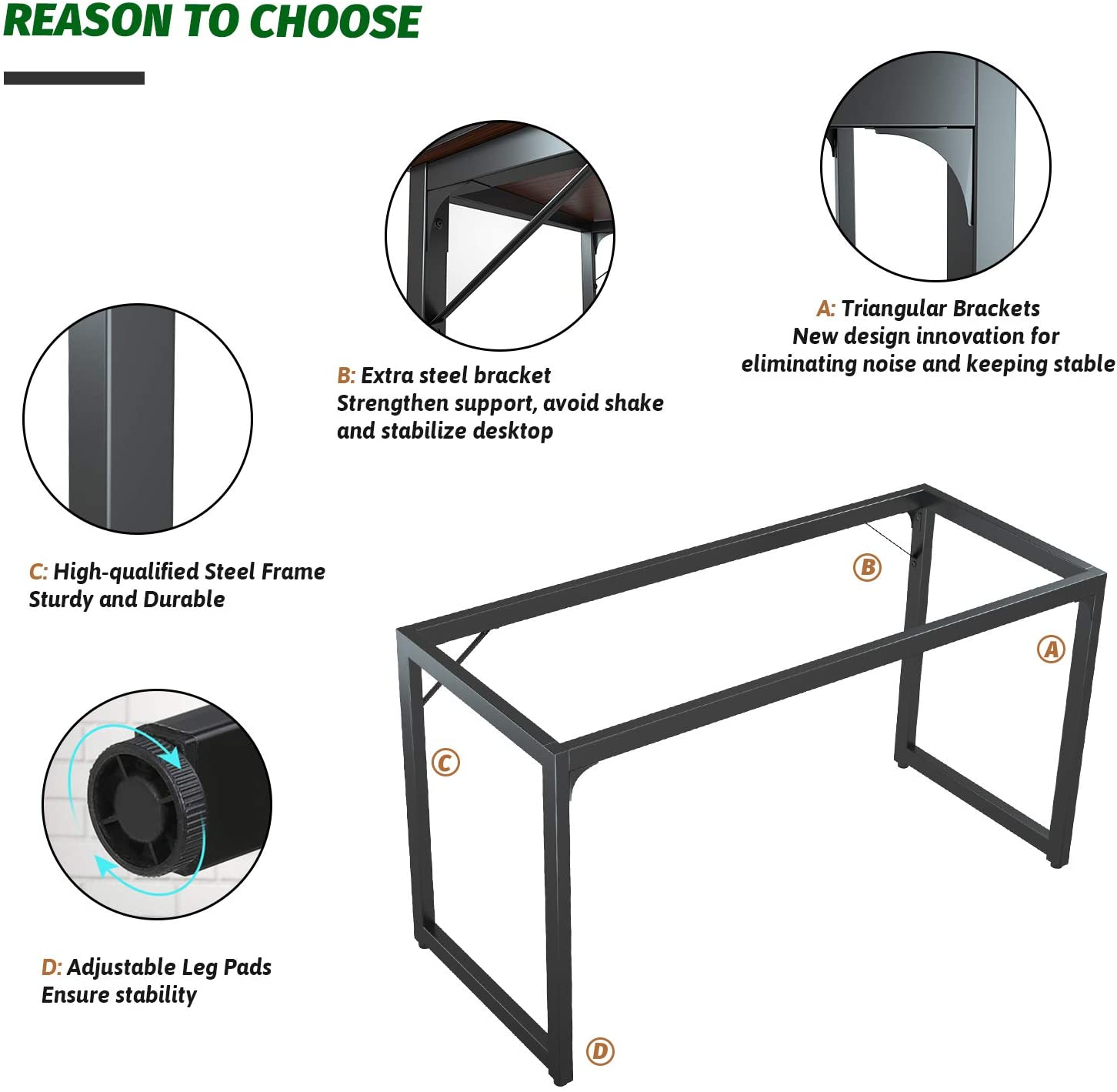 ★ 高品质耐用–这款电脑桌由厚中密度纤维板桌面制成,具有防刮、防碰撞和防水设计,保护办公桌表面免受日常磨损。厚粉末涂层金属框架和轨道腿结构使桌子非常坚固。