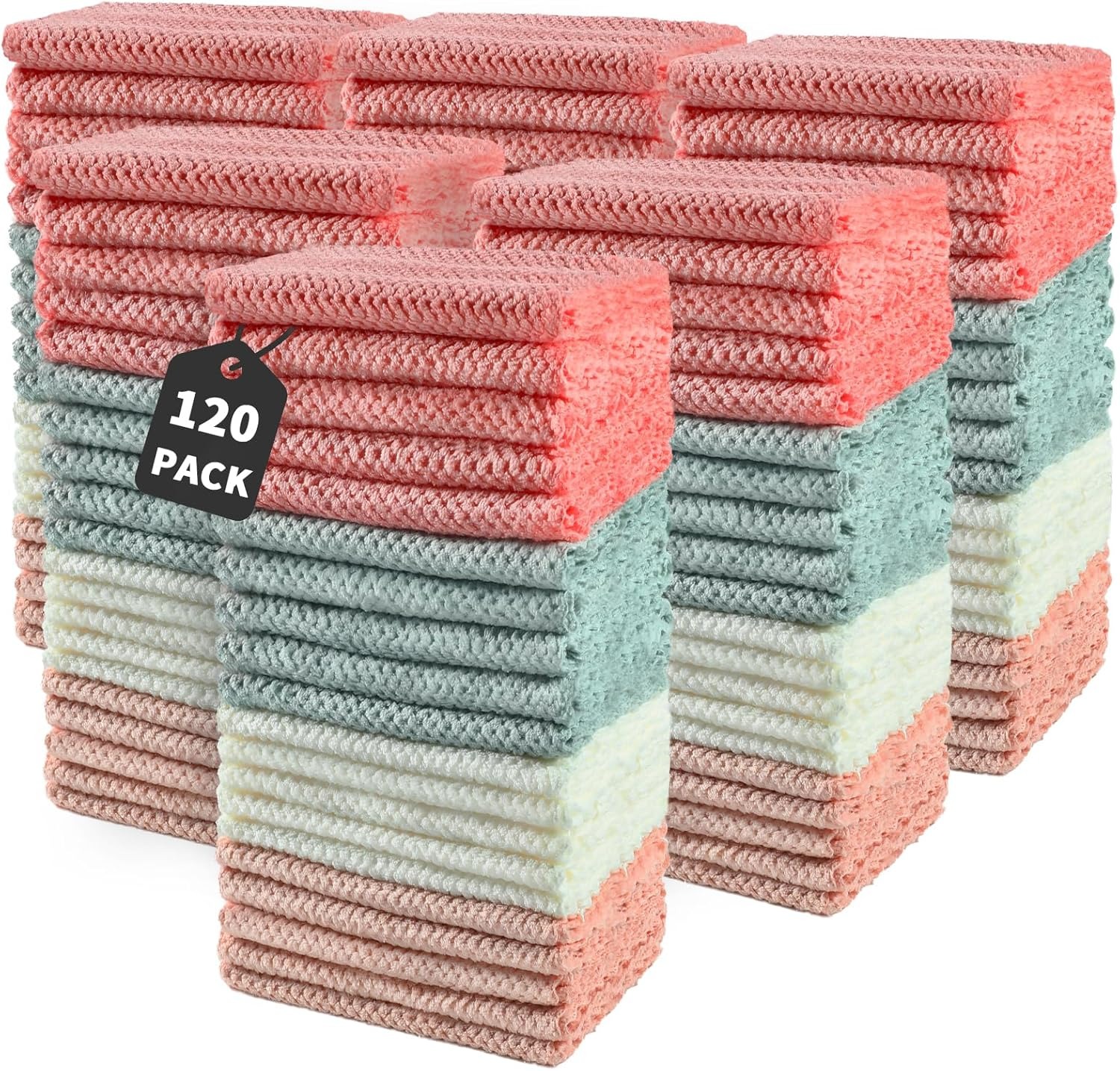 套装包括60块双面超细纤维清洁布,吸水性好,不掉毛,不易褪色,清洁桌面、玻璃和精致材料时不会划伤油漆或在表面留下微小划痕,可以用手或机器反复清洗和重复使用,环保。