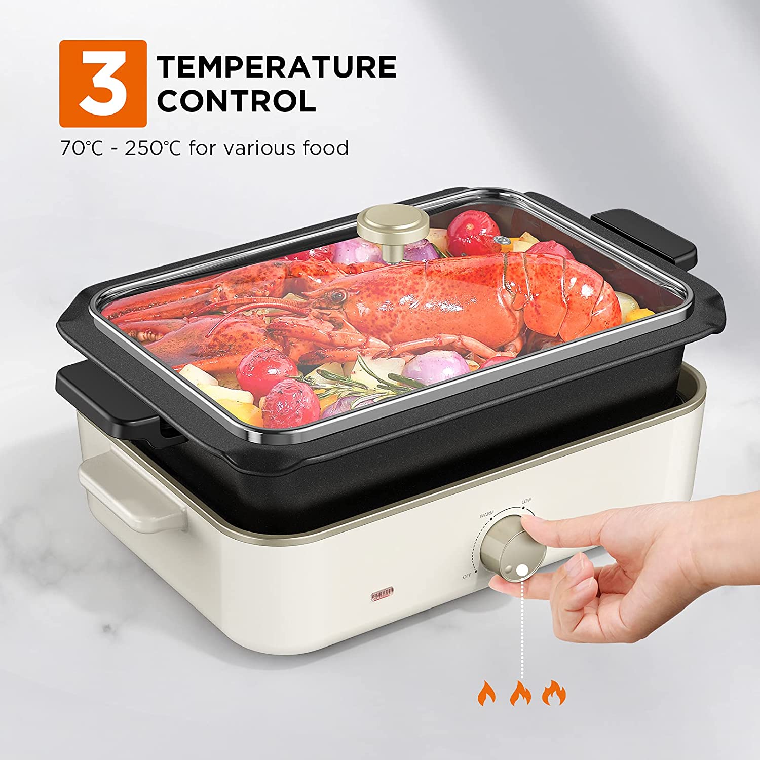 3级温度可选:温暖,低,高,范围158℉(90℃)-482℉(250℃)