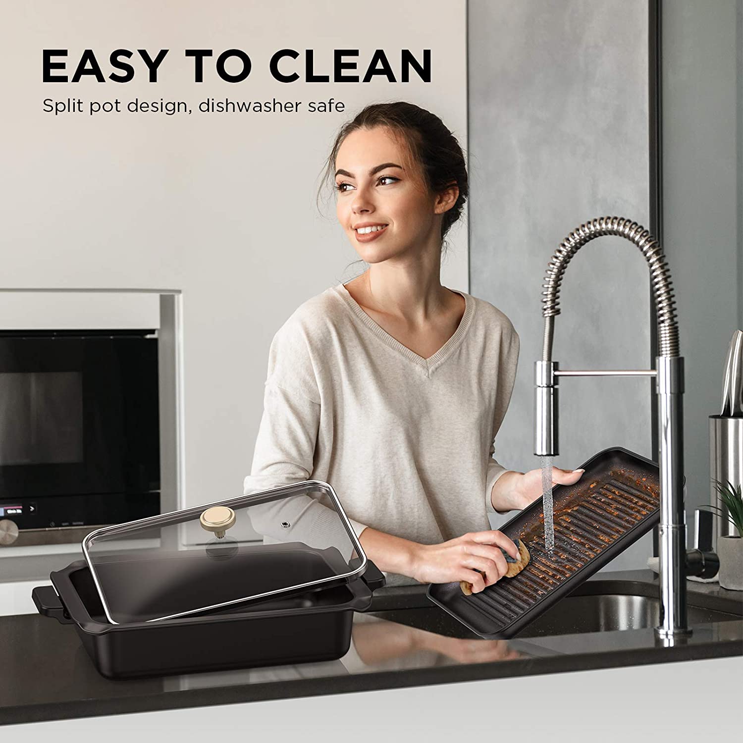 不粘设计:所有配件都是洗碗机安全的,易于清洁,紧凑的设计易于存储