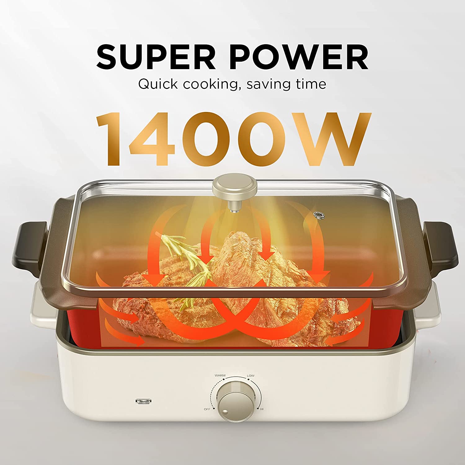 快速加热系统:1400W加热快速,烹饪比炉灶锅更快,更均匀加热,