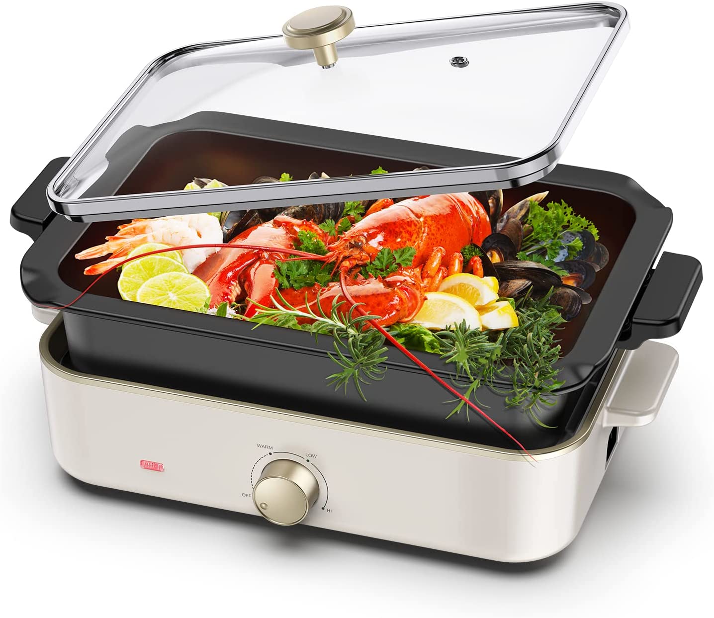 带2个可替换的内胆:配烤盘和深锅,可以烧烤,炖煮,火锅,扒炉,炒菜,一锅多用