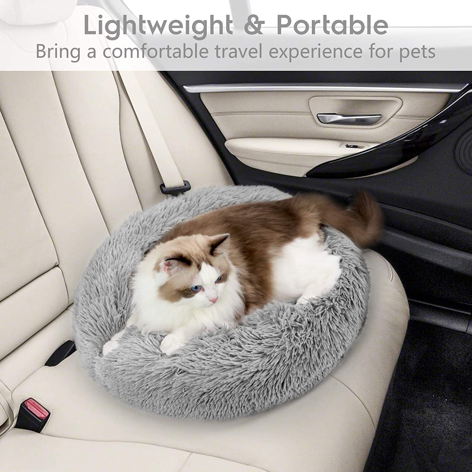 尺寸 50 × 50 × 12厘米,适合13磅以下的小猫或小狗使用。它不仅适用于你家的地板,也适用于你的汽车座位。带猫猫狗狗野营或旅行时,它可以创造一个舒适的小窝。