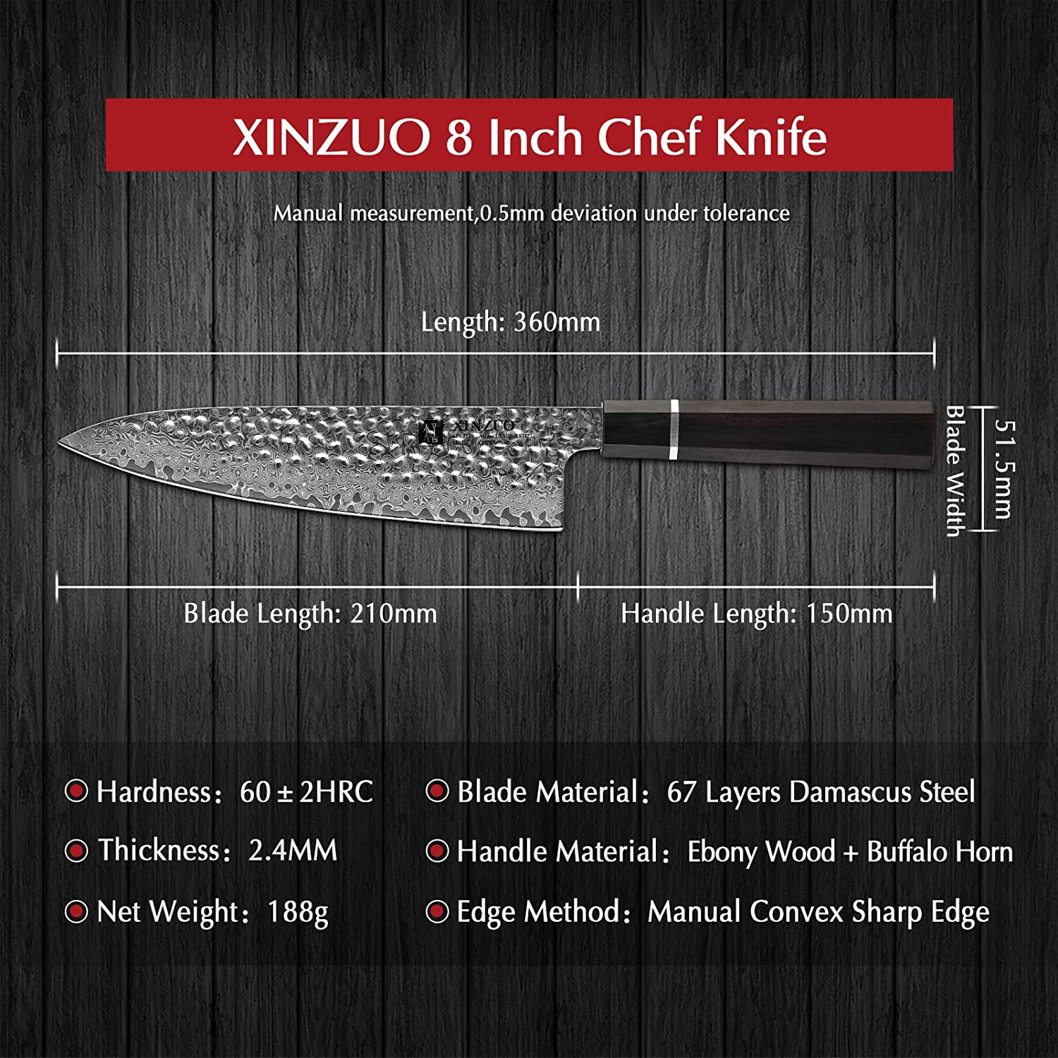 手慢无!历史低价超值!XINZUO 信作 8.3英寸 锤纹 大马士革专业厨师刀特卖+包邮!送中式切肉菜刀/剁骨刀!