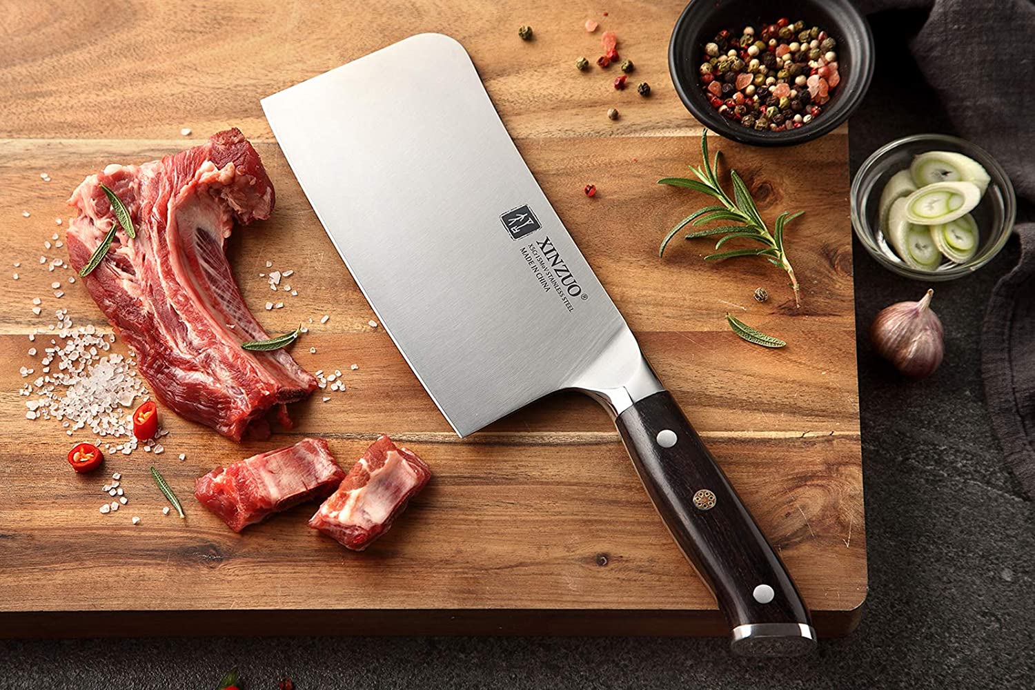 并且现在还有限时活动,购买这款大马士革厨师刀,就送下图这把中式切肉菜刀/剁骨刀!