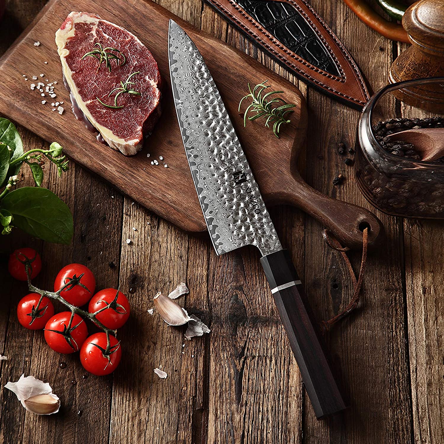 亚马逊网店现有 XINZUO 信作 8.3英寸 锤纹 大马士革专业厨师刀特卖+包邮!