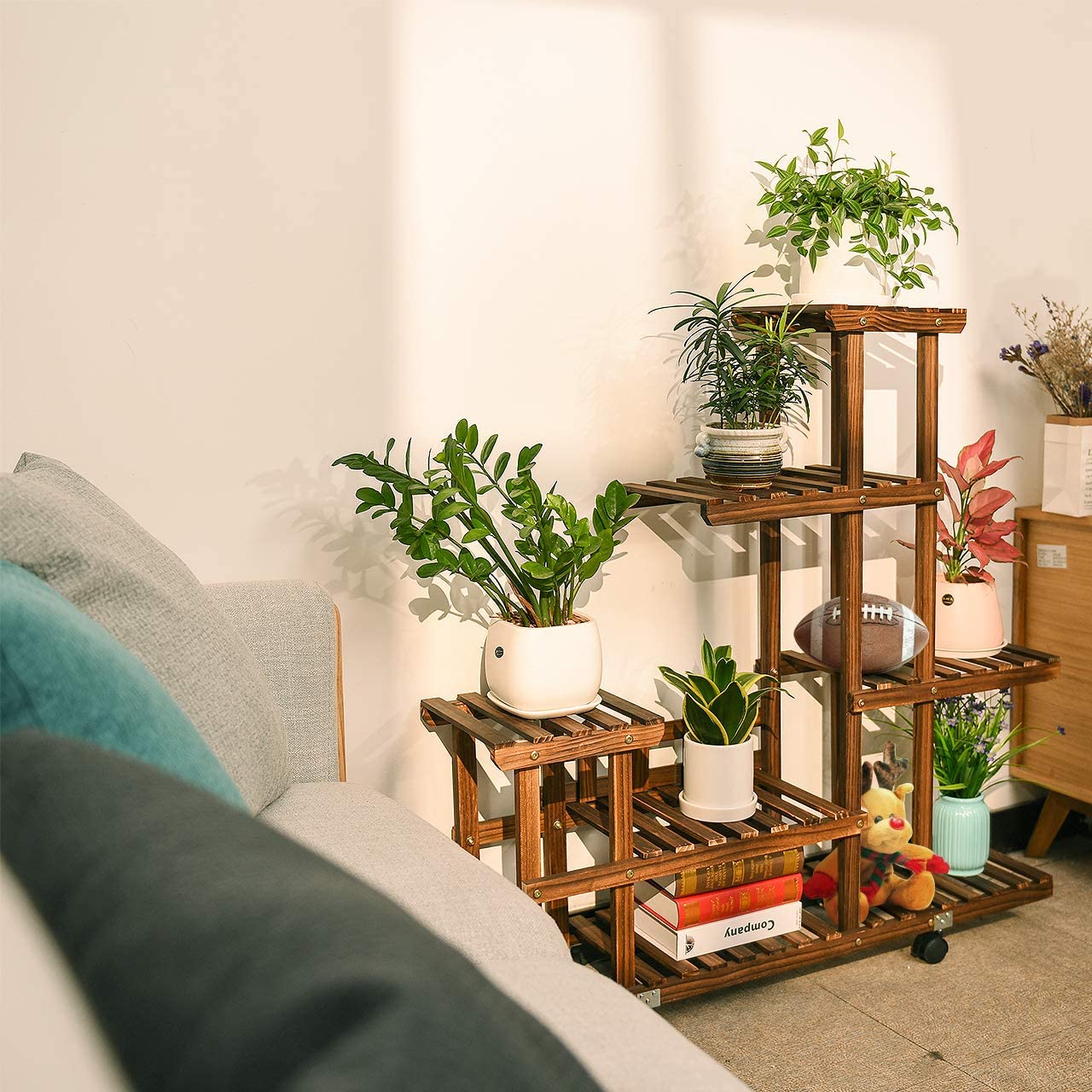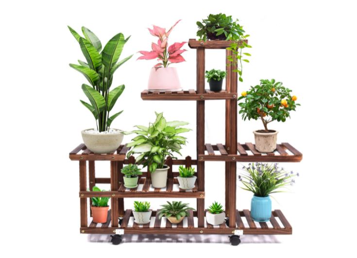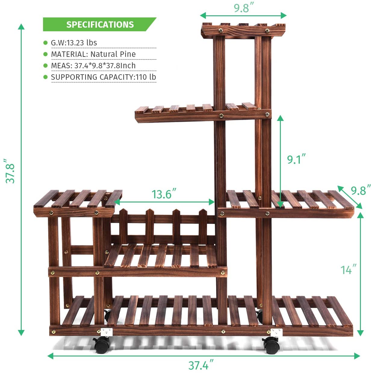 5层大容量:木制花架整体尺寸:宽37.4 ×高37.8 ×深9.7英寸,每个架子都很宽,足够容纳大多数花盆。