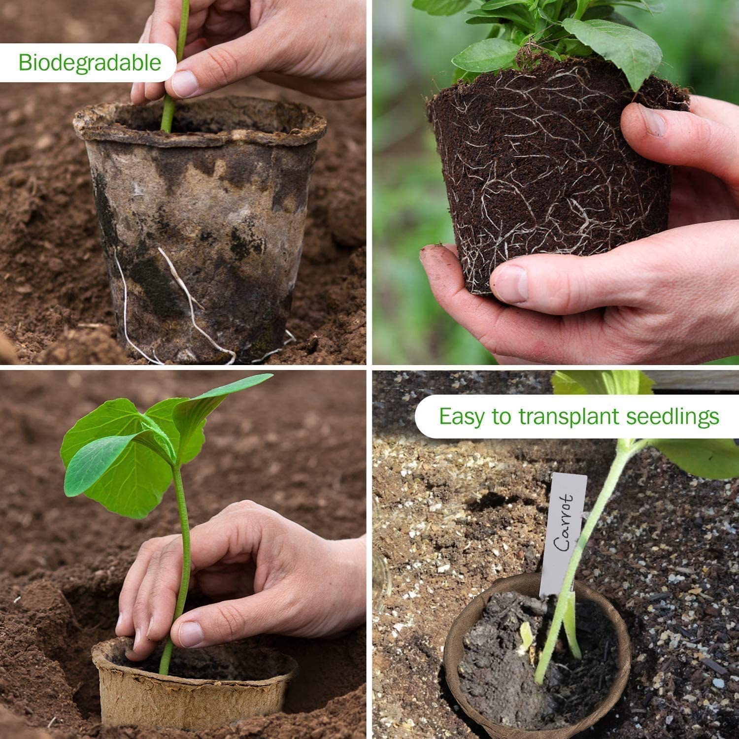 易于使用:种子可以在室内和室外进行培养,移植,无需将它们从花盆中取出。随着时间的推移,花盆会自动降解为肥料。