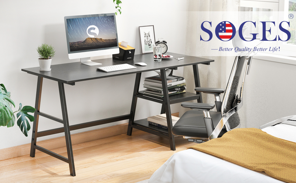 亚马逊现有Soges 带储物架时尚电脑桌/办公桌特卖+包邮!47/55英寸可选