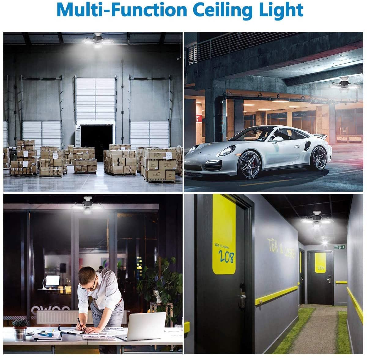 6000LM LED照明可折叠至90度,因此您可以根据需要分配光线。可从四面照明,实现更大的照射面积,无盲点和阴影,为您的车库提供最佳照明效果。