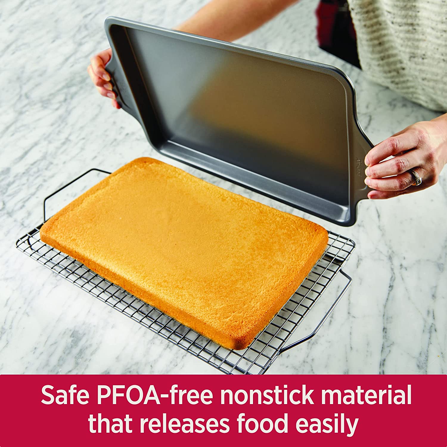 由耐翘曲的商用级镀铝钢制成(可在450°F的烘箱中使用)