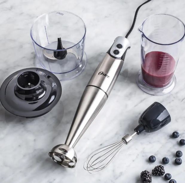 亚马逊现有Oster 三合一不锈钢手动搅拌器套装特卖!带两个搅拌头,搅拌杯,蔬菜切碎器