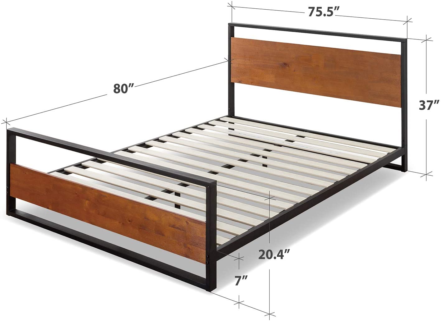 7英寸坚固的钢框架结构,带有木条支撑,可延长床垫的使用寿命