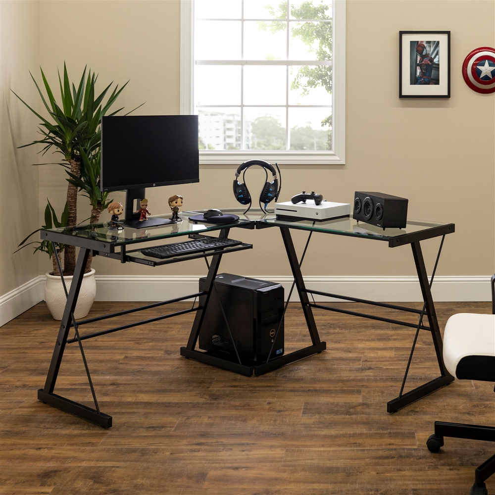 Walker Edison 51英寸L型钢化玻璃电脑桌/办公桌特卖+包邮!